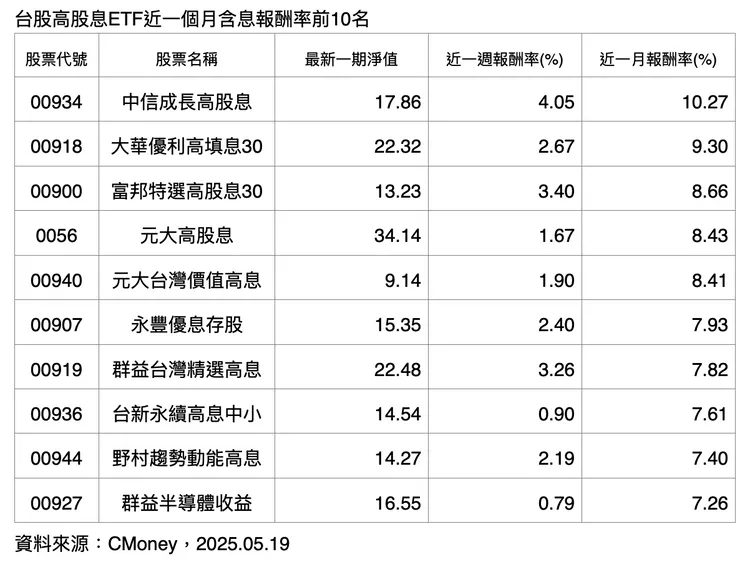 近期,包含中信小資高價30(00894)、元大台灣價值高息(00940)、凱基台灣AI 50(00952)在內的9檔台股ETF陸續啟動換股,其中00940同樣納入航運股以及部分AI相關的高息成長股;後續尚有6月3日的群益台灣精選高息(00919)及統一台灣高息動能(00939)、6月17日的元大台灣高息低波(00713)、6月26日的復華台灣科技優息(00929),以及7月1日的凱基優選高股息30(00915)、大華優利高填息30(00918)等台股高股息ETF,都將陸續進行成分股調整,換股行情可望延續。