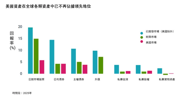 第二,估值重置。美股估值目前仍處於高位,若因經濟成長預期放緩而下降,可能會引發市場調整美股評級,為投資者再次帶來跨地域多元化配置的機會。