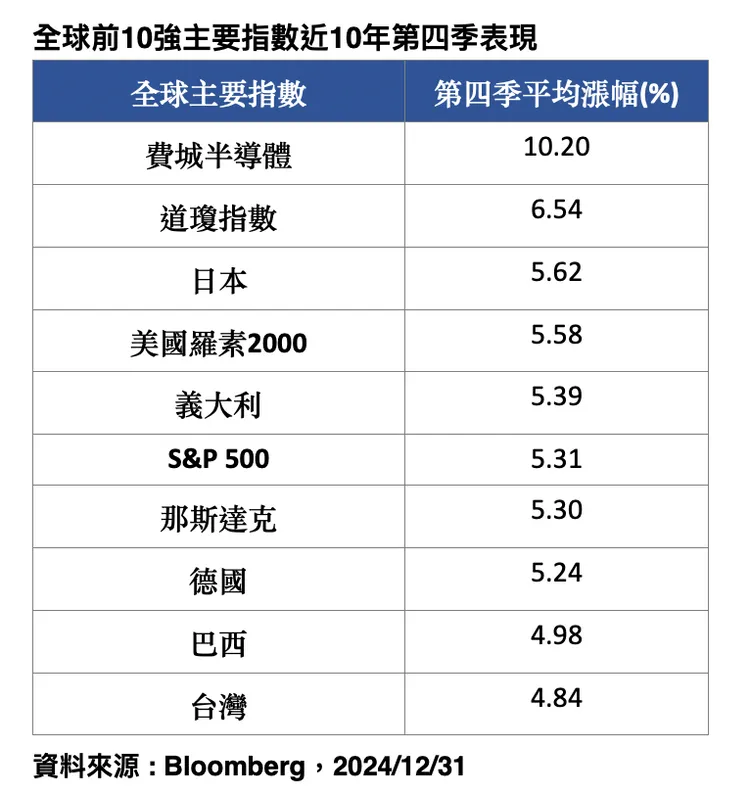 保德信全球藍籌ETF(009810)經理人黃相慈表示,年底消費旺季是推升行情的重要驅動力。歐美感恩節、聖誕節與新年連續的消費潮,加上電商與實體通路的促銷活動,往往帶來零售銷售大幅成長。據統計,美國每年11月至聖誕節的消費額,通常占零售商全年營收兩成,成為年底行情的重要助力。由於股市通常領先數據反應,投資人可提早卡位,掌握提前布局契機。