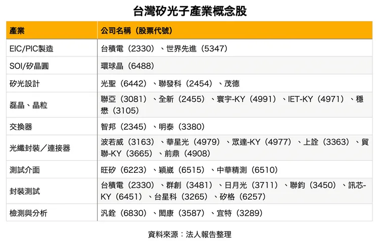 CPO 與矽光子已從實驗室走向商用化前夜,Broadcom 推動開放生態、NVIDIA 鞏固封閉系統,兩大路線加速分化;台積電憑藉製程、封裝與測試整合穩居全球核心供應商。法人普遍認為 2027~2028 年是商業化關鍵點,屆時無論是測試與封裝、材料與 SOI 晶圓,還是模組與光學元件,台灣廠商都將在全球 AI 高速互連浪潮中扮演不可或缺的角色,成為下一波 AI 投資布局的受益族群。
