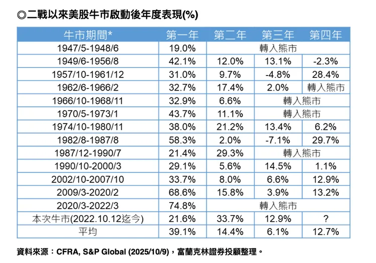 富蘭克林證券投顧分析,美股多頭格局穩健延續,即使本益比攀升至25倍、AI族群估值泡沫疑慮升高,但企業基本面仍具支撐力。截至10月10日,標普500指數第三季獲利年增預估達8.8%,若扣除能源類股,成長更上看9.6%。法人指出,短線雖受大廠財報與美中貿易角力干擾,但聯準會維持寬鬆政策基調,加上美企獲利續揚,仍有望支撐美股後市續攻。