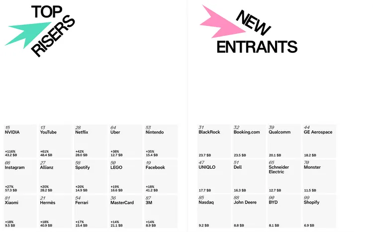 報告指出,Netflix憑藉全球原創內容布局與AI推薦演算法的深化,讓觀影體驗愈發個人化。其品牌價值已高居全球第28名,也是首次被列入「Top Risers(成長最快)」榜單。Interbrand指出,Netflix近年積極投資生成式AI劇本工具與動態預告剪輯系統,能在不同市場針對觀眾偏好推出「在地版預告」,強化內容共鳴度,也拉高品牌親近感。這種以數據驅動情感連結的策略,是其品牌成長的關鍵。