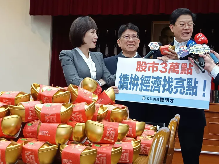 羅明才表示,他和立委賴惠員表示,接下來若台股漲至4萬點,就要一人發一片面膜,大家面上有光。