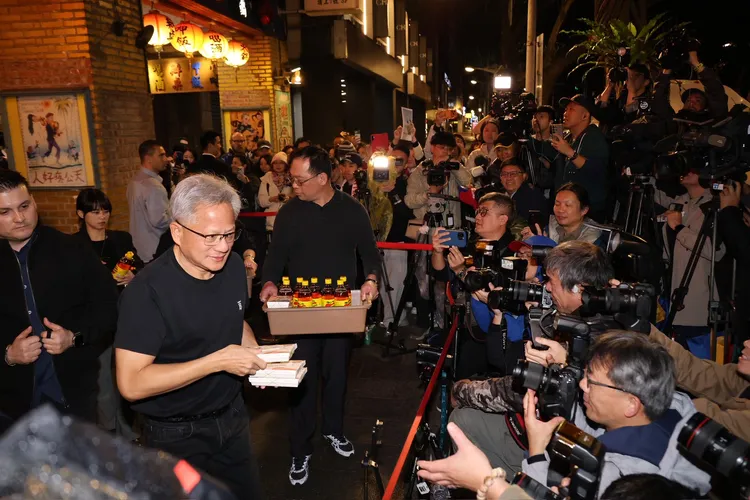 黃仁勳不僅主動向粉絲揮手致意,還大喊誰肚子餓,親自分送香腸油飯、蘋果西打、香菇芝麻包等台式點心,讓在寒風中等待的民眾直呼驚喜,也替這場重量級AI供應鏈聚會增添濃厚人情味。隨著AI產業風雲人物齊聚,兆元宴不僅是產業交流場合,也成為黃仁勳與台灣粉絲近距離互動的另類舞台。