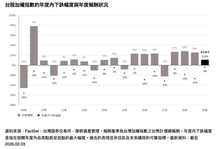 沈馨進一步指出,實務上「持續大漲」的市場並不常見,波動反而是股市的常態。今年台股在1至2月已出現接近20%的漲幅,在地緣政治衝突升溫與市場情緒轉趨不安的情況下,市場修正的可能性始終存在,因此在投資策略上,除了紀律之外,適度搭配策略工具同樣重要。