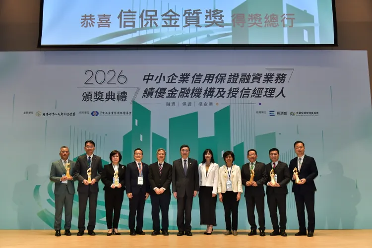 中小企業信用保證基金舉行「2026中小企業信用保證融資業務績優金融機構及授信經理人頒獎典禮」,表揚金融機構及授信經理人運用信用保證機制協助中小企業取得融資。