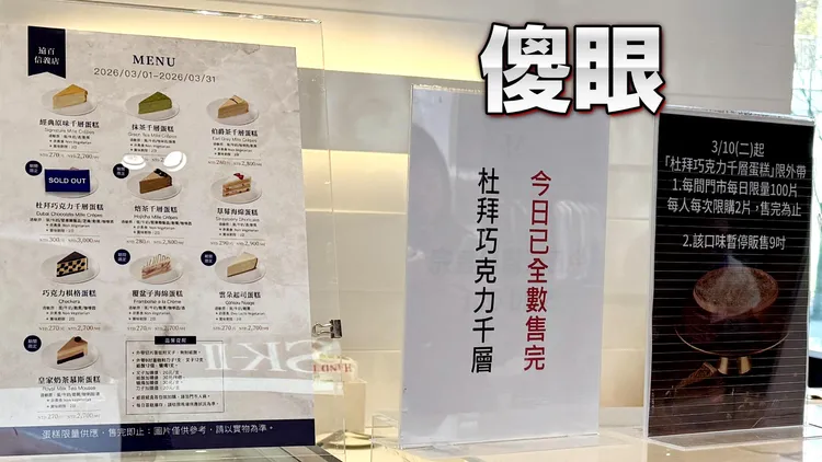 連鎖甜點Lady M近期因推出限定新品「杜拜巧克力千層蛋糕」,吸引大批民眾排隊搶購,還造成百貨公司一開門不少人隨即湧入奔跑直衝櫃位的亂象。