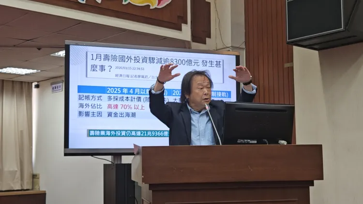 據金管會統計,去年壽險可運用資金近33兆7,375萬,其中有22兆7,672萬在國外投資,佔比約67.48%。王世堅昨(18日)在立法院財政委員會質詢時表示,如此高的國外投資伴隨著匯率風險、戰爭風險,以及每年高額的避險成本,相較前年佔比高達70.8%,他雖肯定金管會對於引導壽險資金回台的努力,但他認為金管會努力還是不夠。