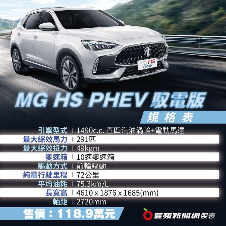 而MG Taiwan選擇HS成為重返台灣的首發車型,便是想靠著HS設定的中型休旅尺碼,加上大滿配高CP值的優勢,意圖在短時間內累積聲量。其中1.5T汽油渦輪版以不到90萬元標配Level 2半自動駕駛輔助、全景天窗、12.3吋液晶儀表板、10.1吋中央觸控螢幕、電動尾門等高規配備,加上180匹最大馬力、7速雙離合器變速箱,展現想上打進口同級、下攻國產小型休旅車的野心;而HS PHEV馭電版則是以亮眼的291匹綜效馬力輸出,配上同級唯一的插電式油電系統,加上118.9萬元擁高規配備,受到油電休旅潛在客戶關注。