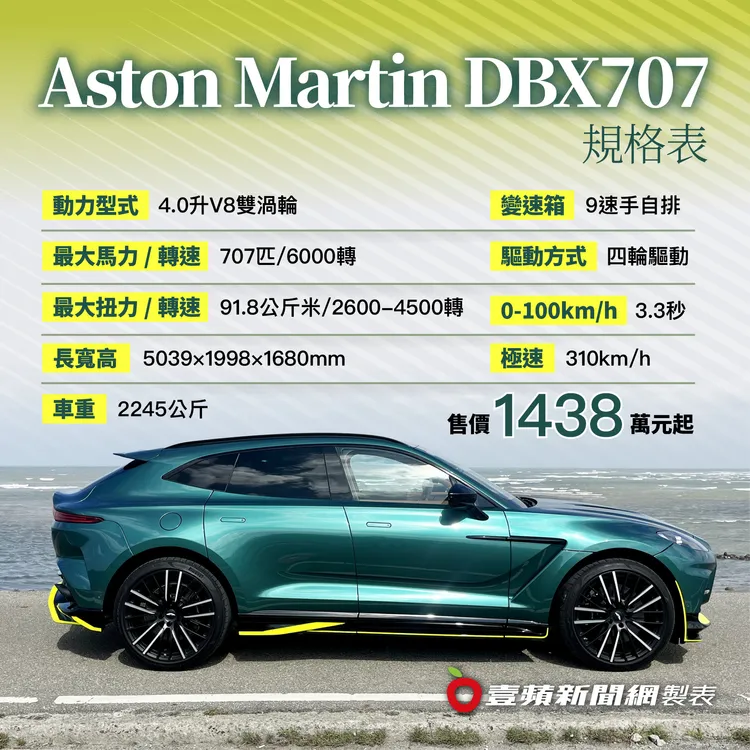 Aston Martin史上首款SUV—DBX,一直是我個人很喜歡的一部超級跑旅,除了保有品牌一貫優雅氣質、奢華內在,操控與動力表現也如品牌旗下跑車般「愈開愈有味」。然而今年春天,原廠推出這款號稱”The world’s most powerful luxury SUV”(世上最強大豪華SUV)的DBX707,著實讓人好奇、新車是否因此變得桀驁難馴?畢竟其最大馬力已達到當時競爭對手中最強大的707匹。