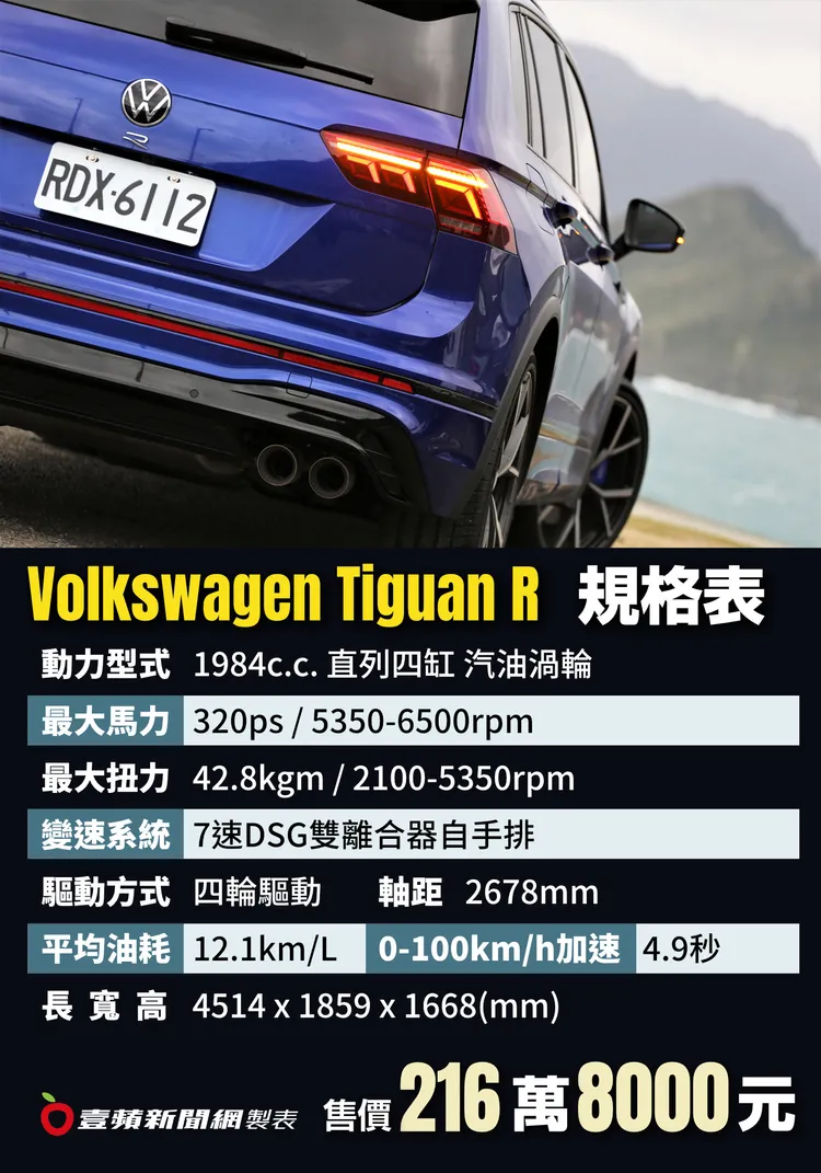 即使這兩年在原物料成本上揚、供應鏈短缺,及通貨膨脹的多重效應下,如今的Tiguan R售價已來到216.8萬元,但對應其320匹馬力的輸出,馬力CP值換算下來仍舊相當划算。如果你只能選擇一台車,以往只能在滿足自己熱血情懷,或是讓家人擁有更寬敞實用的空間之間抉擇,但如今你可以藉由一台Tiguan R滿足兩者,而且每個領域的表現確實都能讓人心服口服。