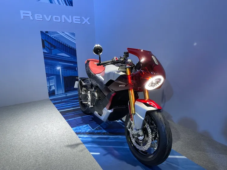 最後,全新KYMCO紅牌大型電動重機街跑RevoNEX,融合現代感的優雅線條與古典美學的設計元素,以半透視分割整流罩,經典子彈頭圓燈,搭配短巧上翹的後半身,前後呼應的造型尾燈,展現令人驚艷的復古創新工藝,散發全新電動車時代的科技未來感。