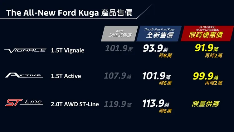 全新Ford Kuga小改款全車系編成及售價: