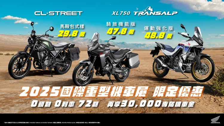 此外,Honda 本次也同步推出都會風格新作 CL Street,建議售價 29.8 萬元,搭贈價值 9,370 元的原廠馬鞍包,同樣享有完整分期與購車金優惠方案,鎖定都會通勤與風格騎士族群。