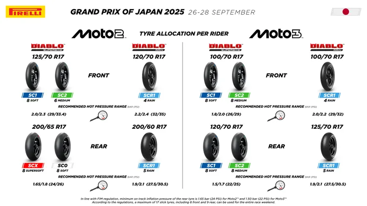 倍耐力表示,早在 2024 年 SCX 首度於 Moto2 與 Moto3 賽事亮相時,便已確認 Motegi 賽道對輪胎的磨耗需求相對溫和,因此相當適合搭配超軟膠料。事實上,去年所有 Moto2 車手均選擇軟質 SC0 後胎與 SC1 前胎應戰。今年 SCX 的加入,勢必讓比賽節奏與戰術有更多發揮空間。