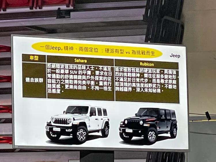 Jeep 重返台灣後的第一款新車,正式以經典的 Wrangler 作為領銜主角。首波提供 Sahara 與 Rubicon 兩款配置,預售分別為 209.8 萬元與 239.8 萬元,並自即日起開放接單,最快將於 2026 年第二季交車。