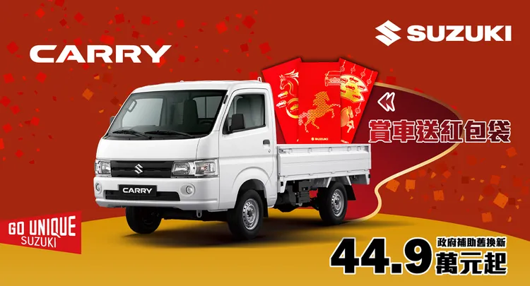 專為職人打造的 SUZUKI CARRY 也推出限時優惠,以 8.5 x 5.5 尺大貨台設計,讓常見的 4x8 尺板材平整放置不傾斜,兼顧耐用與實用性,是木工師傅與行動商家的理想運輸夥伴。