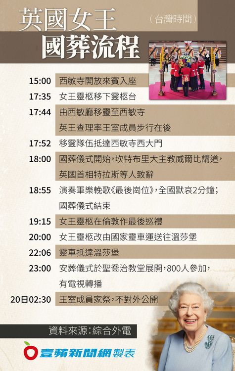 發稿:15:33 更新:新增國葬儀式禮成、市區巡禮結束、靈柩移往溫莎堡