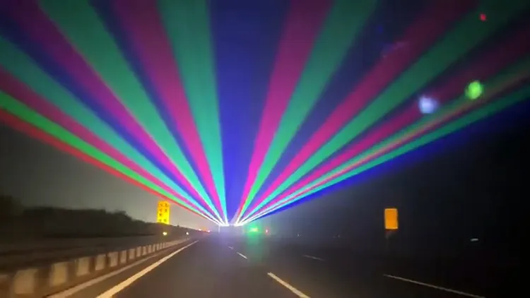 山東高速公路交警證實,這是一個故意投射的激光燈幕,希望藉此提振駕駛精神,燈光是朝上射出,不會對駕駛眼睛造成影響。