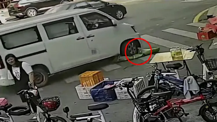 綜合中國媒體報導,事件發生在4月17日,當時小孩陪媽媽去擺攤賣水果,躲到裝水果的巨大袋子裡玩耍,雖然已經玩到了斑馬線上,但媽媽也沒在管,直到廂型車輾壓袋子,媽媽才嚇得衝過來救援。