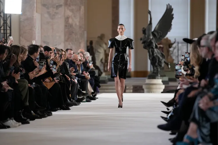 根據《紐約時報》,22日Schiaparelli大秀上這「令人眼花撩亂的幼兒」,由銀色、綠色等各式電子面板、鑲珍珠電路板、電纜、電線和數千顆施華洛世奇水晶製成。