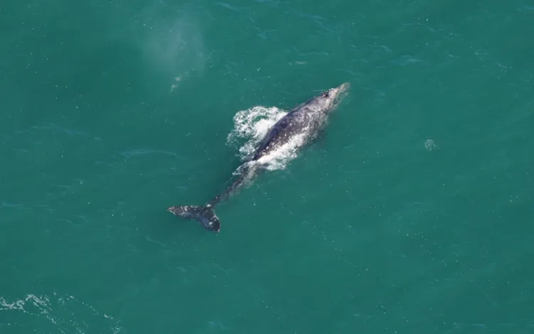 水族館的空中調查小組圍繞著鯨魚所在區域盤旋了大約45分鐘,並拍攝了照片,後來證實這確實是一頭罕見的灰鯨。