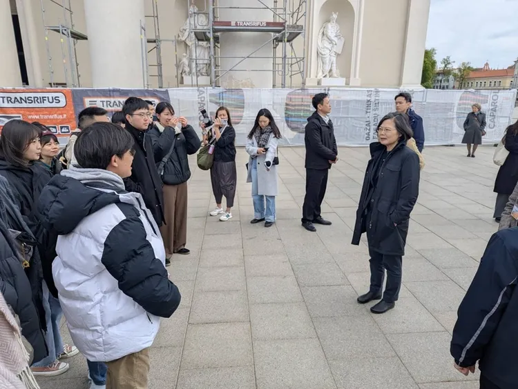 前總統蔡英文訪立陶宛,11日下午在維爾紐斯與約20位當地台灣留學生和交換生親切交流。蔡英文為學生加油打氣,並且叮嚀他們要照顧自己,場面溫馨。中央社