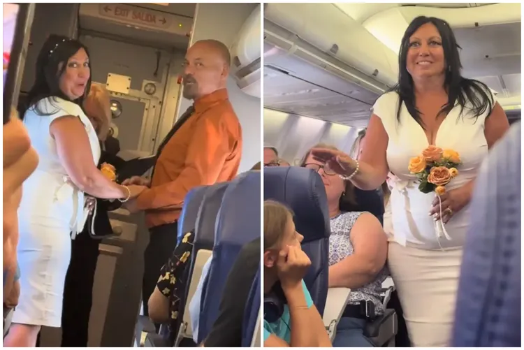 影片中,一名空服員透過廣播宣布這場「萬呎高空婚禮」。她興奮說:「大家都知道西南航空是『愛的航空公司』,而今天,愛就在空中。我們有一對新人——蒂娜和羅傑——即將在這趟航班上,真的、字面意義上的,走上紅毯,而在座各位全都是婚禮的賓客。」