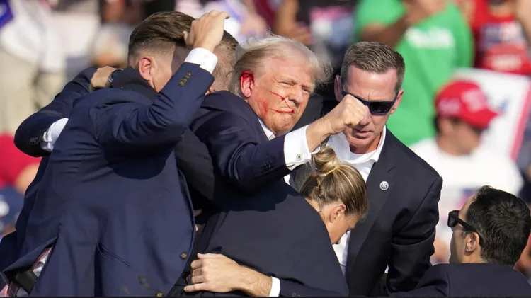 川普2024年7月在賓州巴特勒戶外造勢活動上遭槍手從屋頂開槍襲擊,當時他右耳遭子彈擊傷,群眾中有人遭波及喪命,但川普奇蹟式躲過暗殺槍擊,右臉濺血仍振臂高呼「戰鬥」的影像,成為了美國政治史經典畫面。