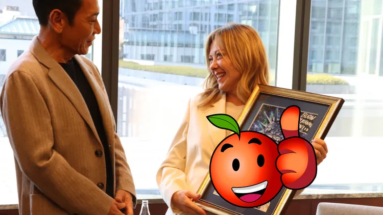 原哲夫的官方X帳號也張貼兩人會面狀況,貼文以義大利文寫著「歡迎,梅洛尼總理!」,說明正在訪日的梅洛尼當天在東京與原哲夫會面,由於適逢梅洛尼過生日,原哲夫特別致贈寫上祝福訊息的吉克利(Giclee)版畫,並與對方握手合影。