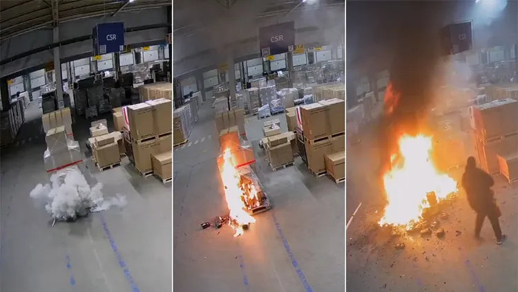 倉庫監視器畫面事後曝光揭露,這起大火源自於倉庫內一個包裹,它在當天清晨6時16分突然冒煙,之後大量煙霧不斷地從包裹中噴出,1分多鐘後爆炸起火燃燒,過了十多分鐘、接近6時半,工作人員拿著滅火器趕來試圖滅火,但根本無法抑制火焰擴散,之後火勢燒向其他包裹,最終整座倉庫陷入火海。