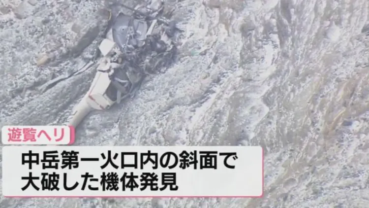 本周二20日從阿蘇市「阿蘇卡德利動物王國」起飛後失聯的遊覽直升機,之後在中岳第一火口內的斜坡上發現已嚴重毀損的機體。直升機上搭載的是來自台灣的41歲男性與36歲女性觀光客,由一名64歲男性飛行員駕駛,目前三人全數下落不明。