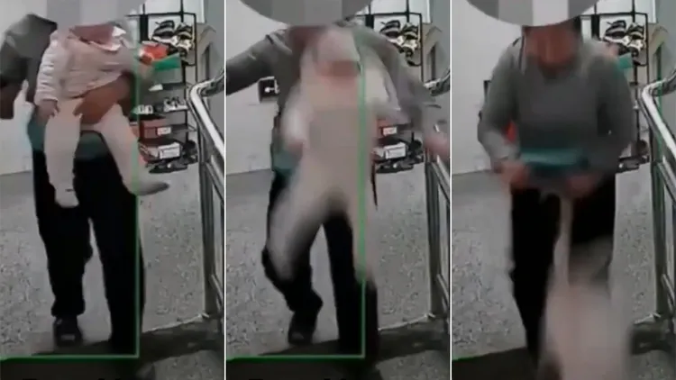 疑似女嬰的母親聞聲趕出來察看,老婦人則左手單手拎起女嬰,右手仍然緊握著手機不放,母親趕緊把女嬰接入懷中。