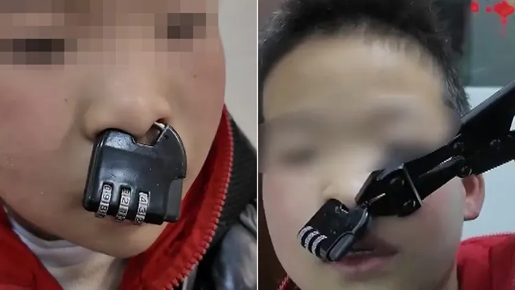 綜合中國媒體報導,看到男童鼻孔夾著密碼鎖,消防員強忍笑意,先是詢問男童「痛不痛?」男童搖頭表示不會痛,消防員之後使用鉗子把鎖環直接夾斷,男童終於獲得解脫,表示自己再也不敢這麼玩了。