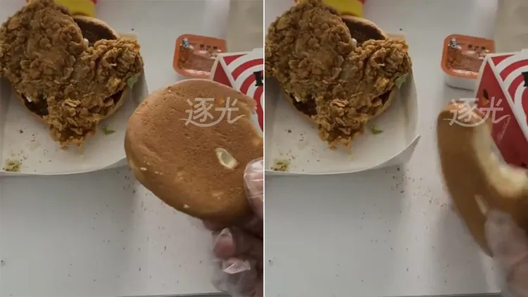 據中國《逐光新聞》報導,女子表示,自己當時一整天沒吃飯很餓,想說點肯德基可以快一點吃到東西,想不到拿到漢堡後,咬了第一口就感覺到異樣,麵包硬的非常難咬,她拿來敲桌子還能發出清晰聲響。