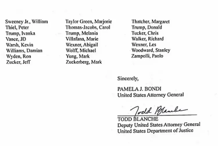 但邦迪指出,被列入「艾普斯坦檔案」或信件中,並不代表有任何罪責或不當行為,這些名字出現在「各種不同的情境」之中。
