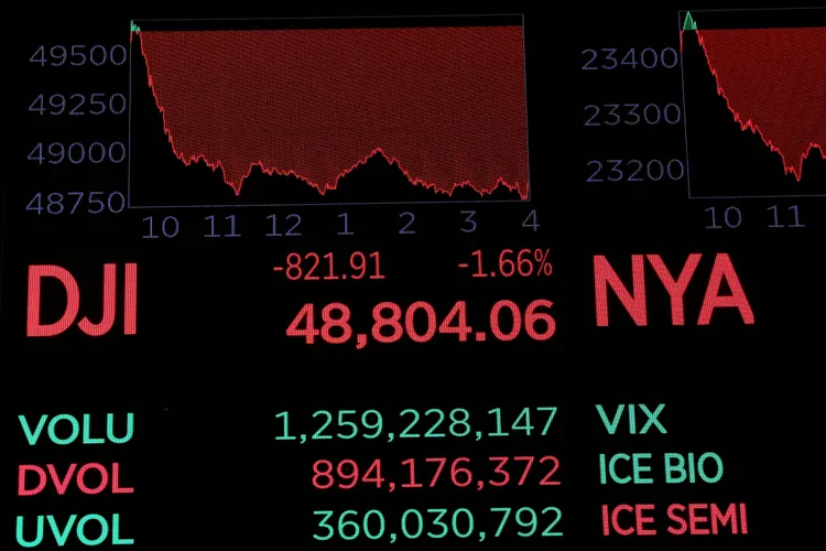 道瓊工業指數重跌821.91點或1.66%,收48804.06點。