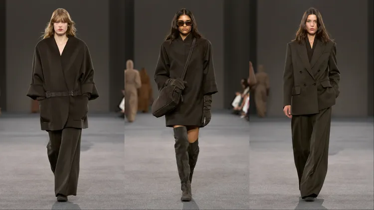 Max Mara也持續發揮面料專家的工藝優勢,除秋冬常見的麂皮質地,經典駱駝絨、羊駝絨及代表性泰迪熊大衣都替注入豐富生命力。色調上擷取狼、狐與獅的自然原色,以駝色、灰褐、暗紅等色調,將現代女性重塑為如瑪蒂爾達般的無畏統治者。品牌更連結歷史關鍵時刻,將瑪蒂爾達的輝煌年代與1981年問世的傳奇101801大衣交織,透過煥新設計的闊肩輪廓,再次堅定其賦能女性的承諾,也見證女性力量在歲月洗鍊下歷久彌新的雋永風格。