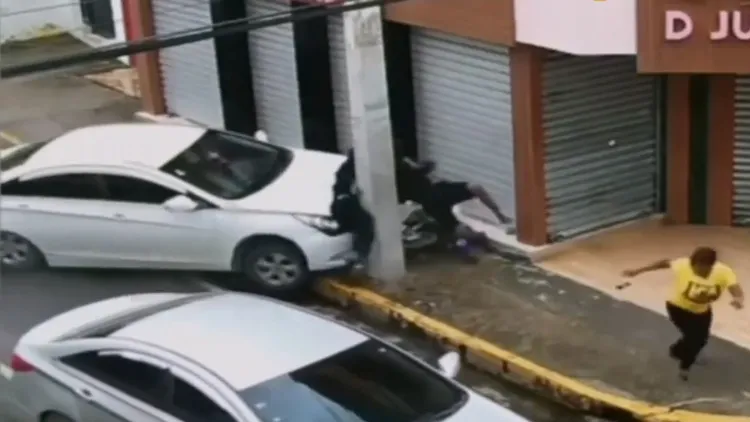 綜合外媒報導,這起搶案發生於3月8日上午,一名女子拿著皮夾,走在薩爾瓦多庫庫魯洛街的人行道上,突然2名搶匪騎機車接近,後座乘客迅速下車搶走女子皮夾,隨即上車要逃離現場。