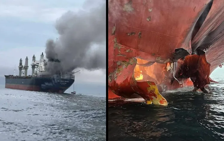 泰國海軍證實,泰國籍散裝貨輪「梅優里納里」號(MAYUREE NAREE,音譯)11日上午航行經過荷莫茲海峽時,遭到不明來源投射物攻擊,泰國海軍公布的照片可見到,甲板上方冒出沖天黑煙,船身底部有明顯破洞且冒出火光。