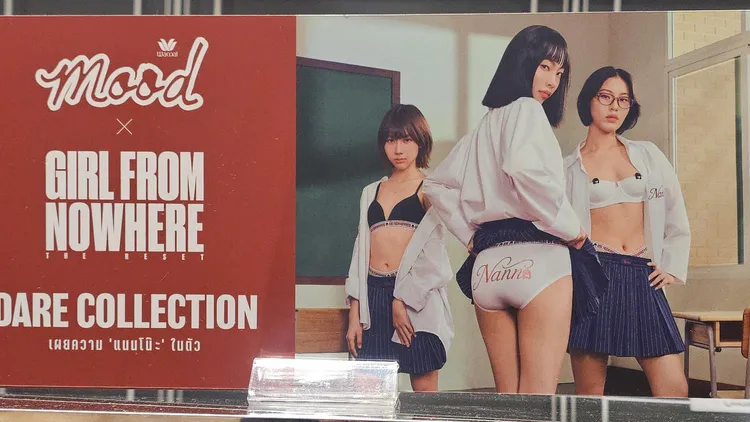 配合《轉學來的女生》新一季播出,泰國華歌爾以劇中人物和氛圍為靈感,推出「Wacoal x Girl from Nowhere: Dare Collection」系列內衣褲,商場廣告是3名女學生站在教室裡,或不扣上衣、或撩起短裙,展露印有劇中女主角娜諾(Nanno)名字的內衣褲。