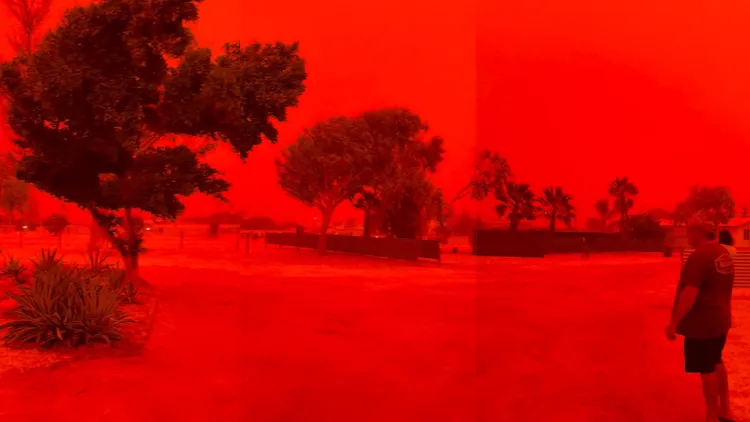 綜合外媒報導,西澳(Western Australia)州鯊魚灣海岸天空日前突然染成一片深紅色,肉眼看去彷彿套上紅色濾鏡,給人世界末日的感覺,加上近來全球動盪局勢,不少民眾直呼「感覺世界要毀滅了」。