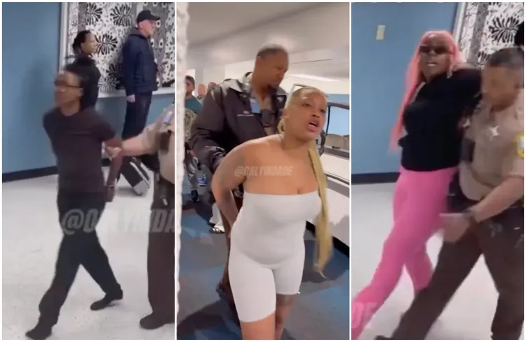 社群媒體帳號 @OnlyInDade 發布的畫面顯示,3名女子被警方戴上手銬押出機場,其中1人甚至還在一名警員身旁扭臀熱舞(twerking)。