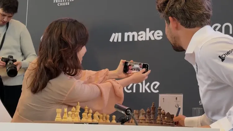 綜合外媒報導,卡爾森與努爾曼的對戰,是在格倫克西洋棋公開賽第二天進行。努爾曼先到場在座位上等候,卡爾森到場後與對方握手,等卡爾森坐下時,她拿出手機詢問他是否可以合影留念,他同意了,並對著鏡頭露出笑容。努爾曼很快速地連續拍了3張照片,表情看起來非常開心。