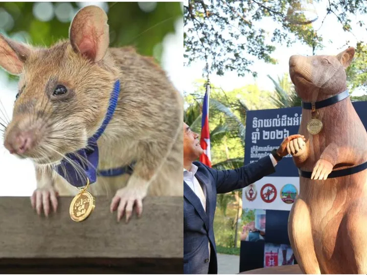 《BBC》報導,曾因排雷貢獻獲頒金質獎章的非洲巨鼠「馬加瓦」(Magawa),近日在柬埔寨特地為牠樹立雕像,更是全球第一座地雷偵測鼠雕像。