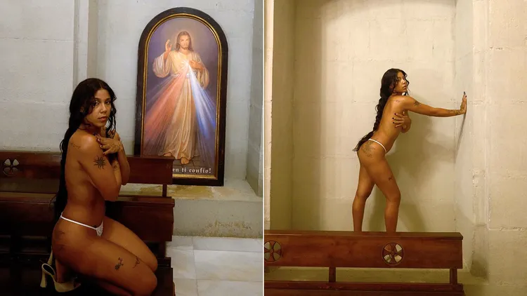 這已經不是托姬莎與宗教發生糾紛,2021年時,她就曾在家鄉拉維加的阿爾塔格拉西亞聖母聖殿拍攝半裸寫真。