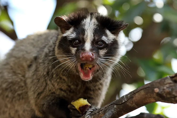 In recent years, more and more wild animals have begun to adjust to city life and are now settling down in urban areas. One such animal is the masked palm civet. These mammals have short gray fur, dark markings on their face, and a clear white stripe that stretches from their nose up to their ears and around their eyes. Their round ears and long gray tail give them a look that falls somewhere between a cat and a raccoon, although they are actually more closely related to a mongoose.