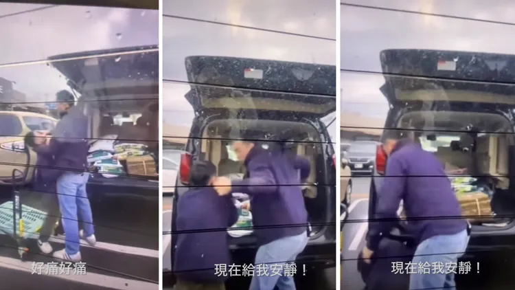 網友分享,神奈川大和市某購物中心停車場,有位大約10歲左右男童替爸爸搬東西,不過他力氣太小搬不太動,讓爸爸很不開心,對他施加捏臉等暴力行為,一旁路人見狀立刻拿手機拍下。