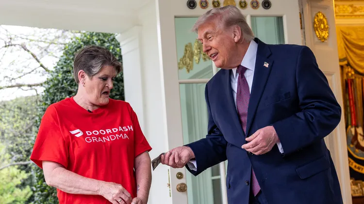 中央社報導,79歲的川普以熱愛速食聞名,他今天踏出白宮核心辦公室,親自接過美國外送服務平台DoorDash外送員帶來的兩袋漢堡。
