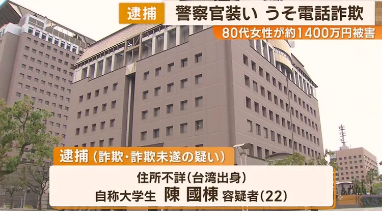 《南日本新聞社》報導,住所不詳的陳男2月底至3月中,與同夥冒充警察,打電話給鹿兒島一名80多歲老先生,成功讓他把裝有450萬日圓(約89萬台幣)的袋子放在家門口,不過錢並未被拿走。